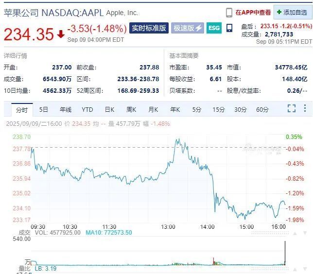 苹果市值一夜蒸发超3700亿元